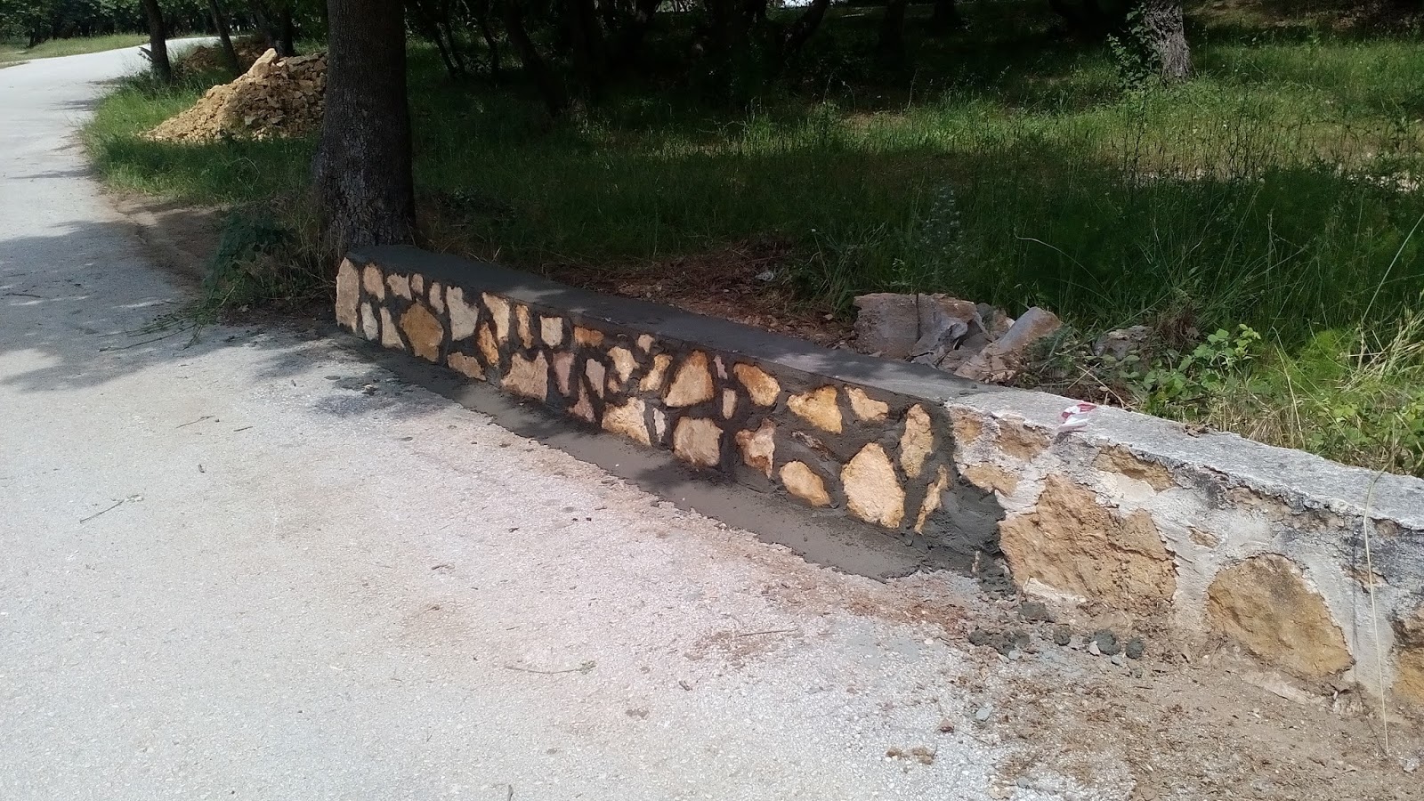 Εργασίες κατασκευής τοιχίου με λιθοδομή στο νότιο τμήμα εργασιών (Μουσείο Φυσικής Ιστορίας) για την ανάπλαση του πλατανότοπου της Μαΐστρου.